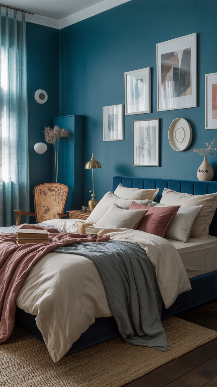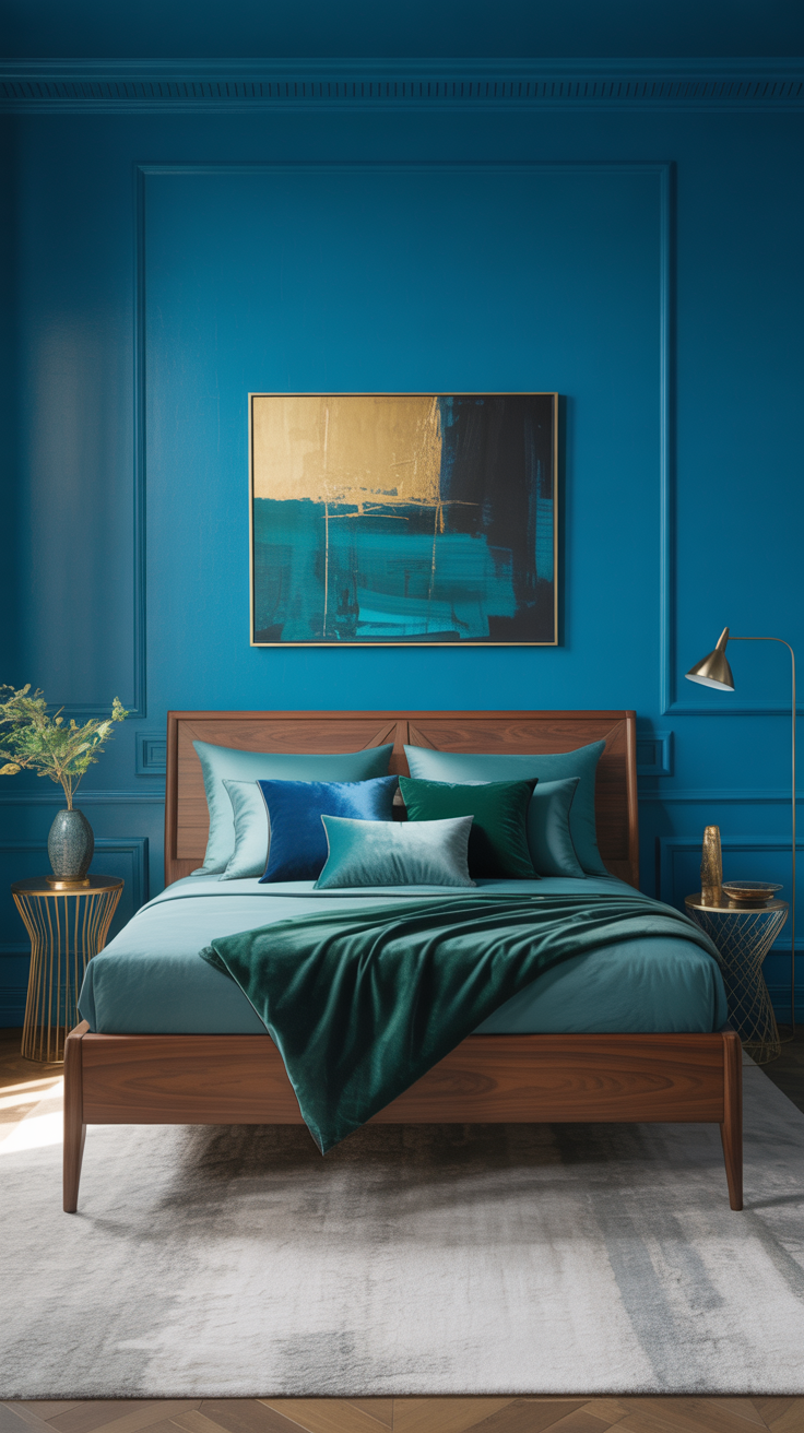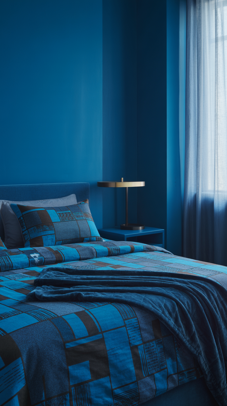 - Walls: Bold blue accent wall