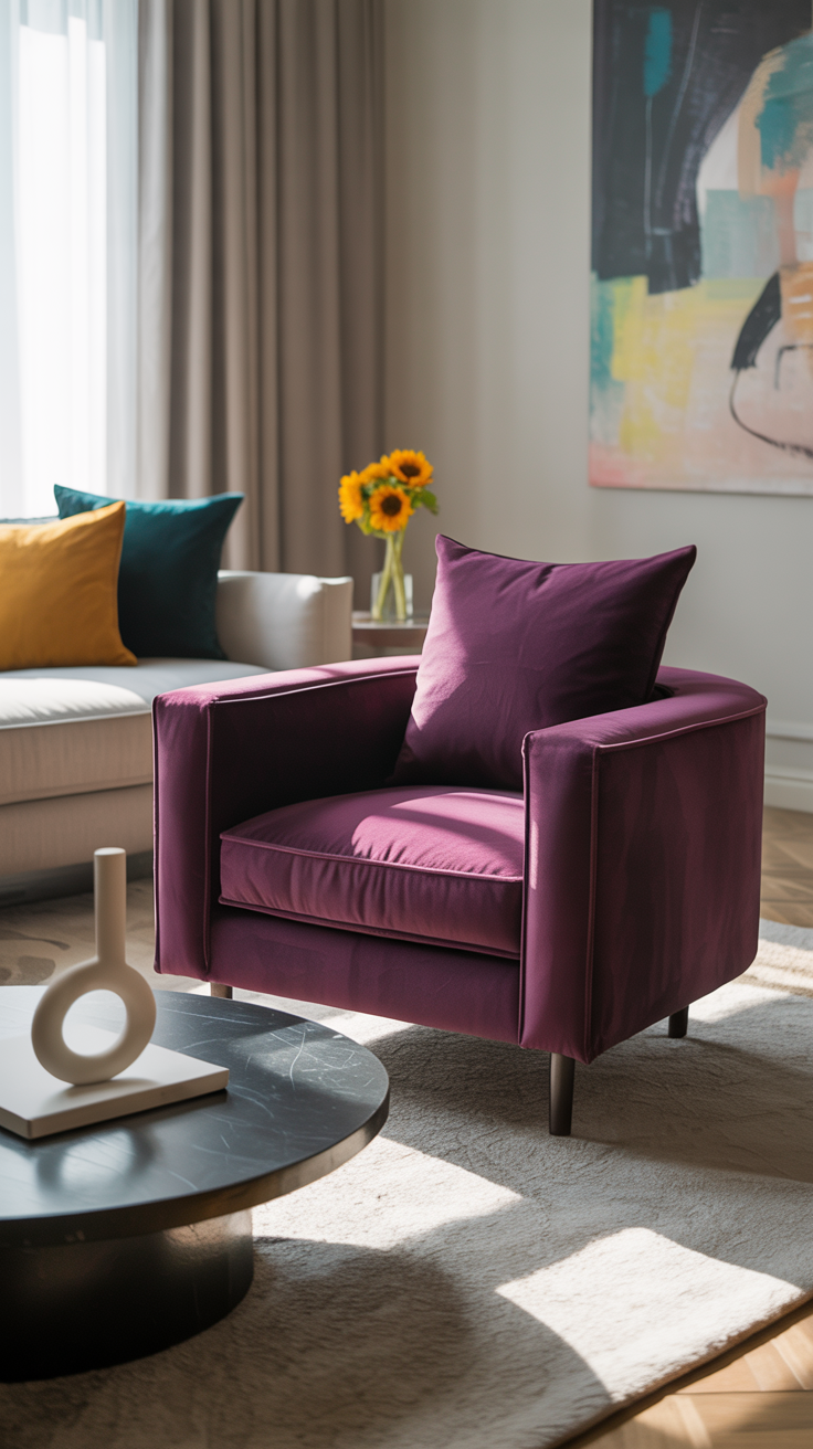But here’s the thing – scale and placement matter. A giant purple sofa in a tiny room can feel like it’s about to eat you alive.