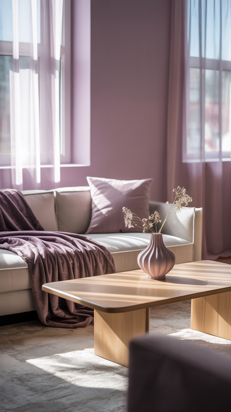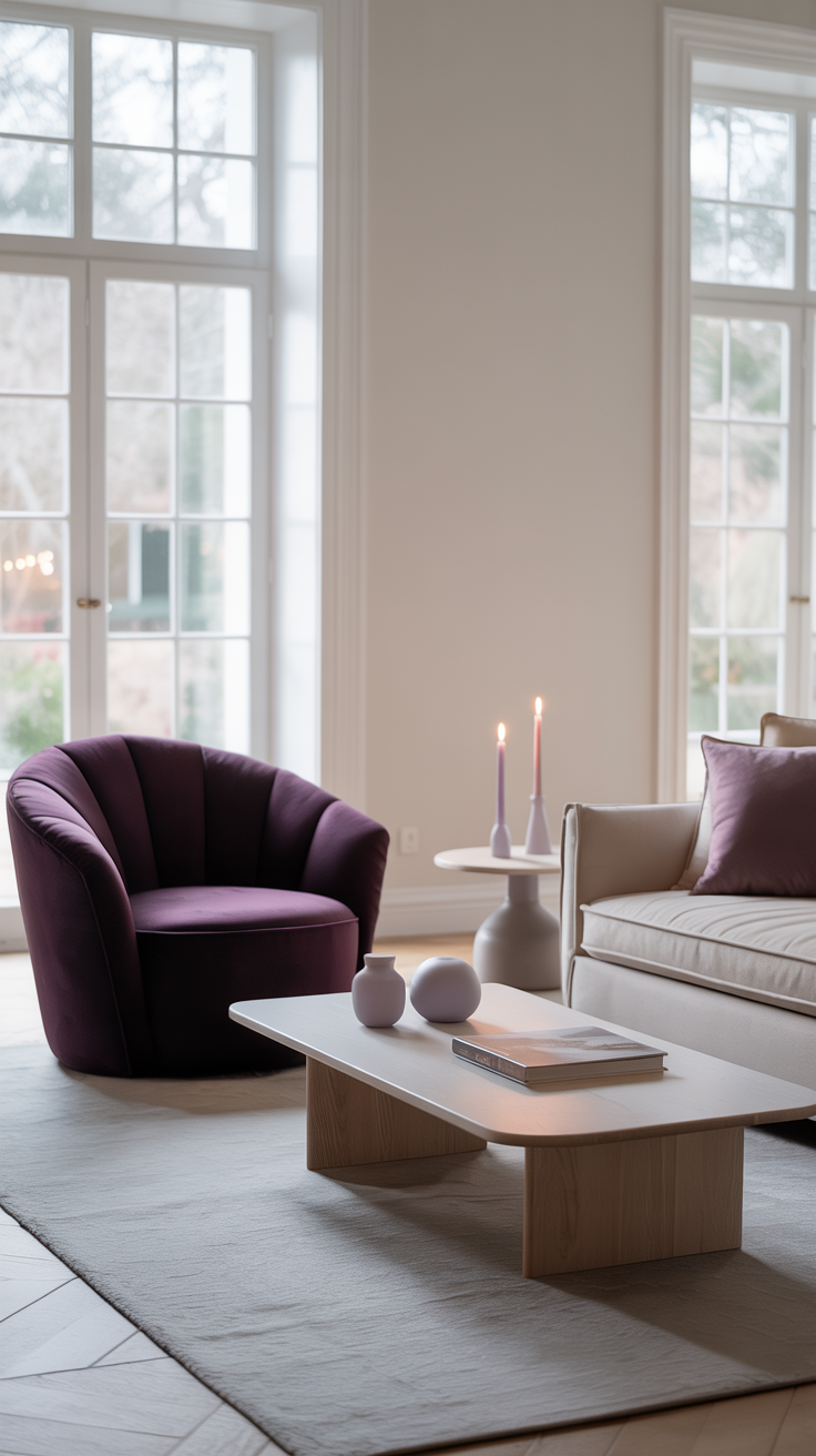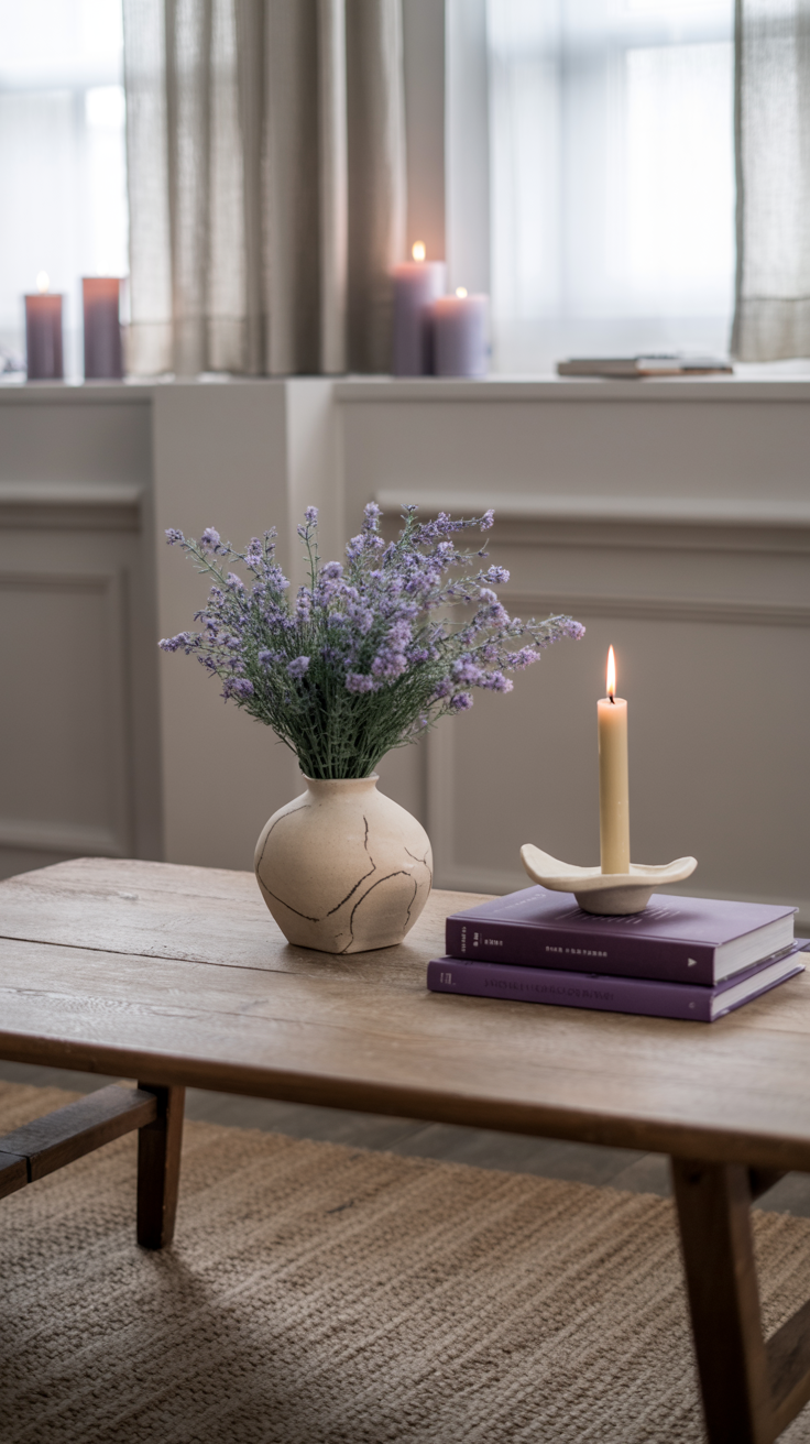 - Matte purple vases or candleholders on a coffee table
