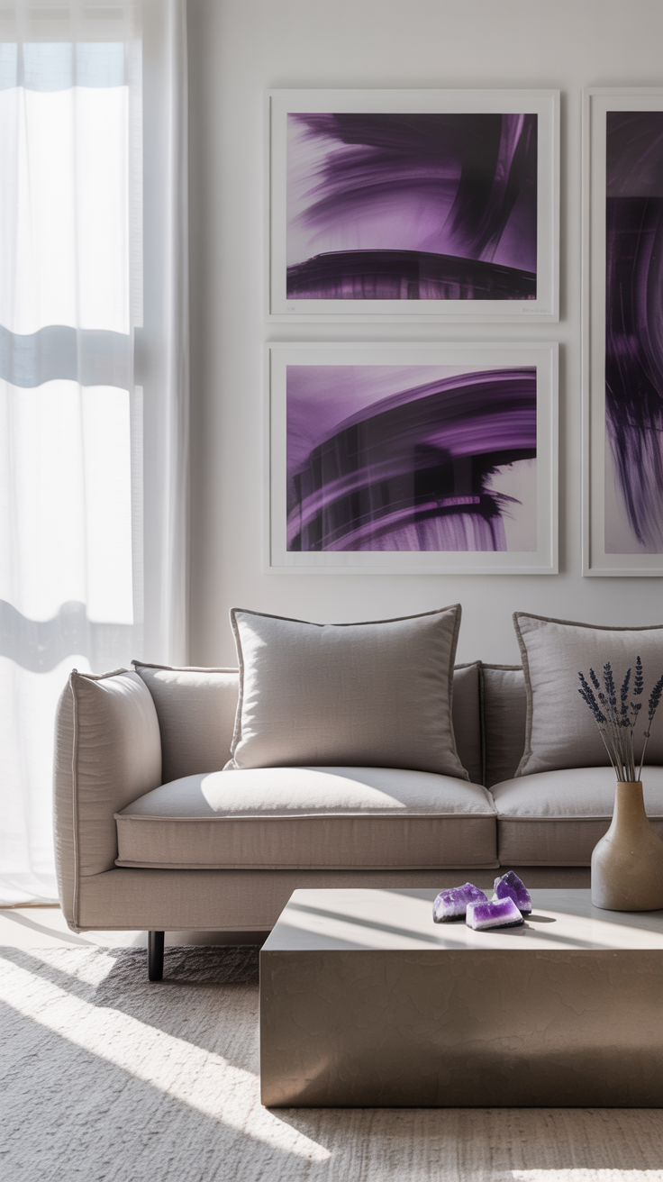 6️⃣ ART AND WALL DECOR AS SUBTLE PURPLE HINTS