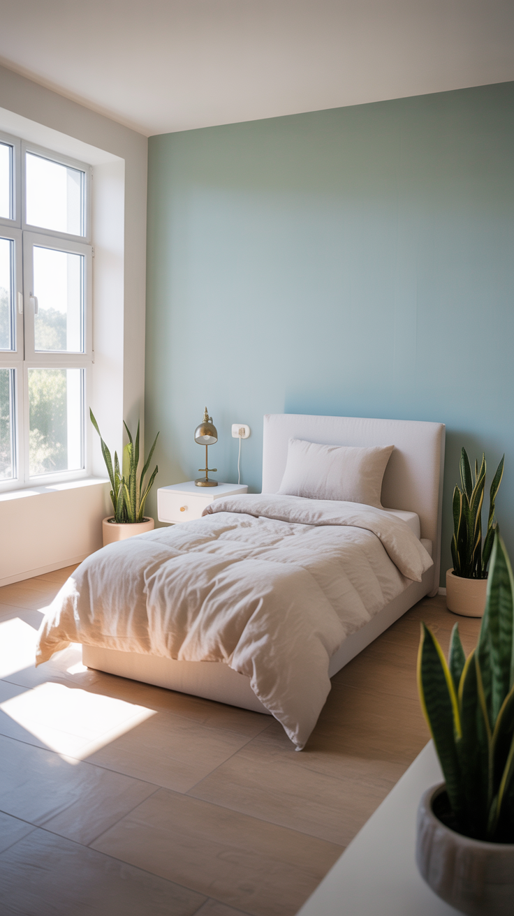 - Don’t overthink it. A single leafy friend can instantly make your blue bedroom feel fresh and alive.