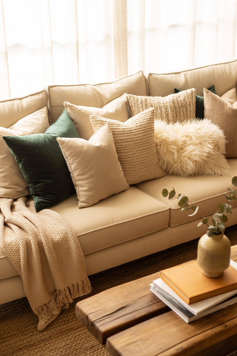 - Pillows: Mix and match! Velvet, linen, faux fur, anything that feels good on your skin. The trick is to have different sizes and textures—think of it like the living room version of a cozy sweater with elbow patches.