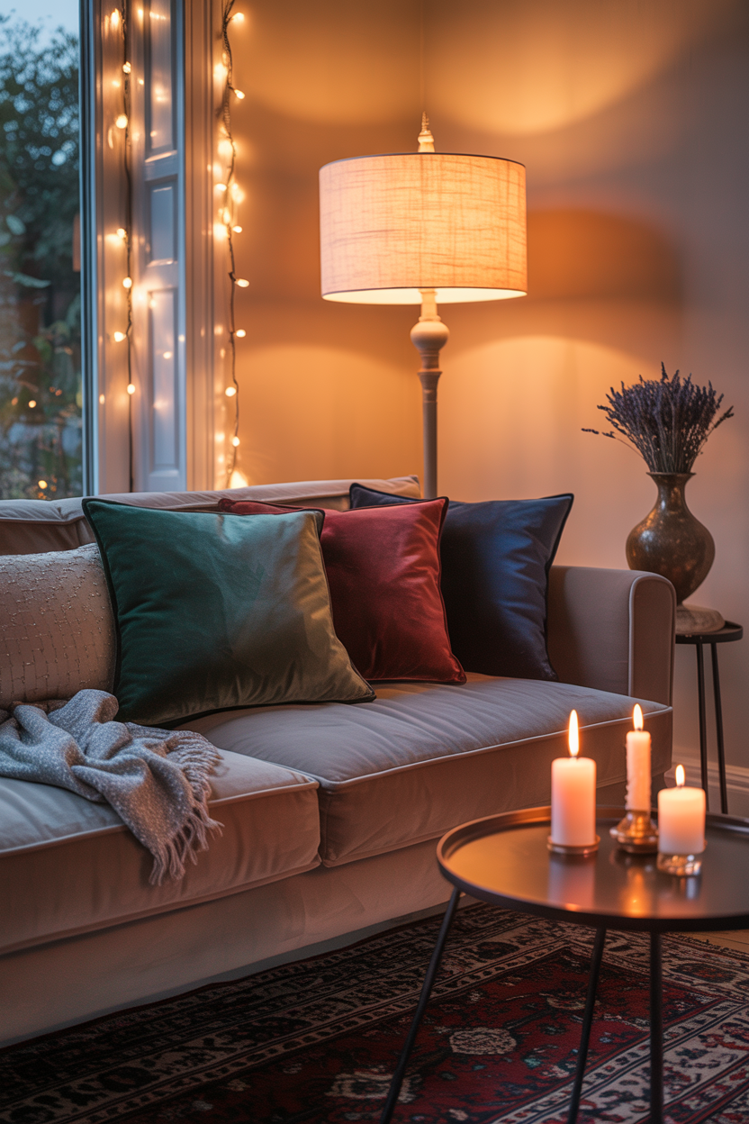 - Layered lighting: This means using different sources—ambient (general light), task (reading lamps), and accent (candles or fairy lights). The combo is magic.