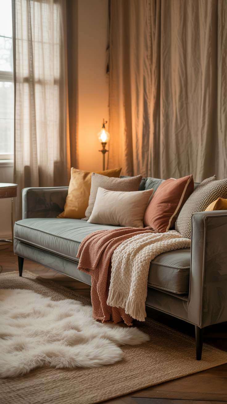 - Pillows: Mix textures (velvet + knit + linen). Bonus points for oversized floor pillows.