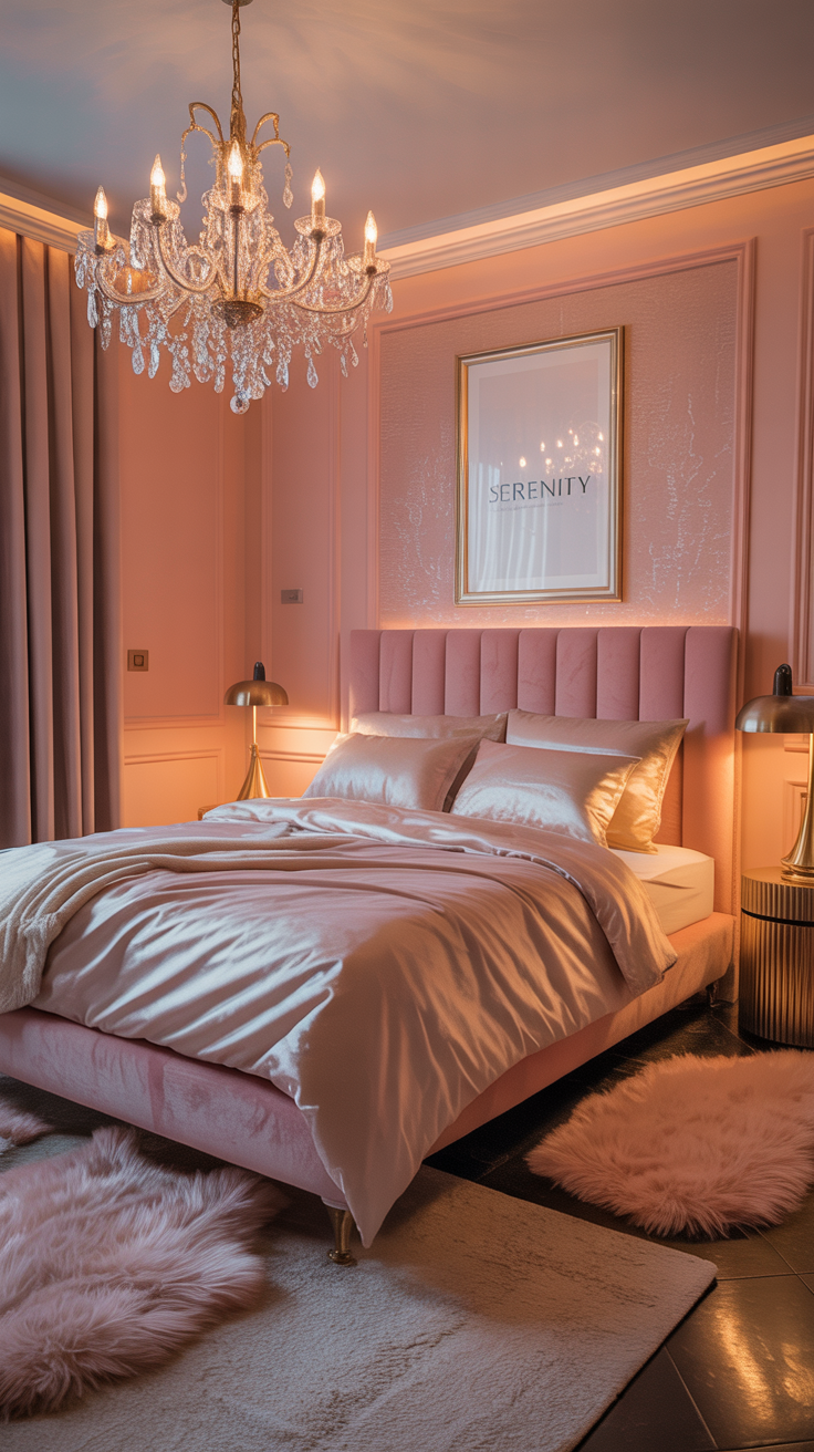 - Lighting, furniture, and layered pink tones = instant glam