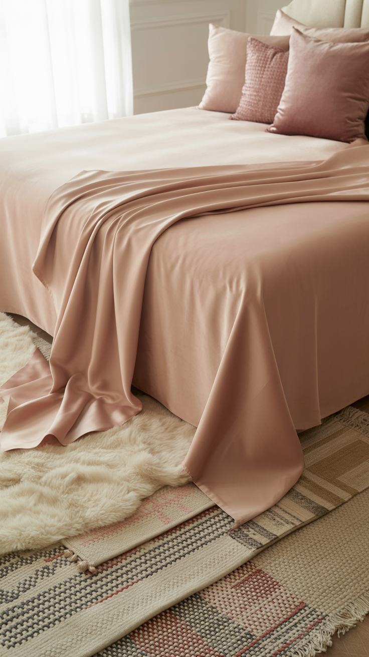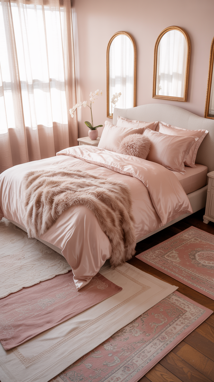 Luxury isn’t just about color. It’s about feel. Velvet, satin, silk, layered rugs—these little details are what make a room look expensive. Without them, your pink room just looks… flat. Sad. Lonely.