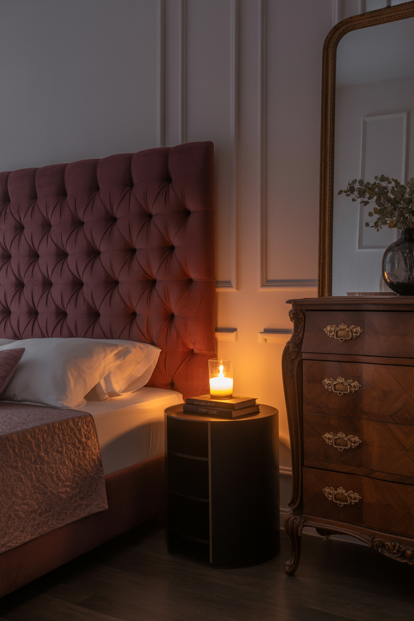 Pro tip: Keep surfaces tidy and curated. Too much stuff makes the room feel chaotic, not romantic.