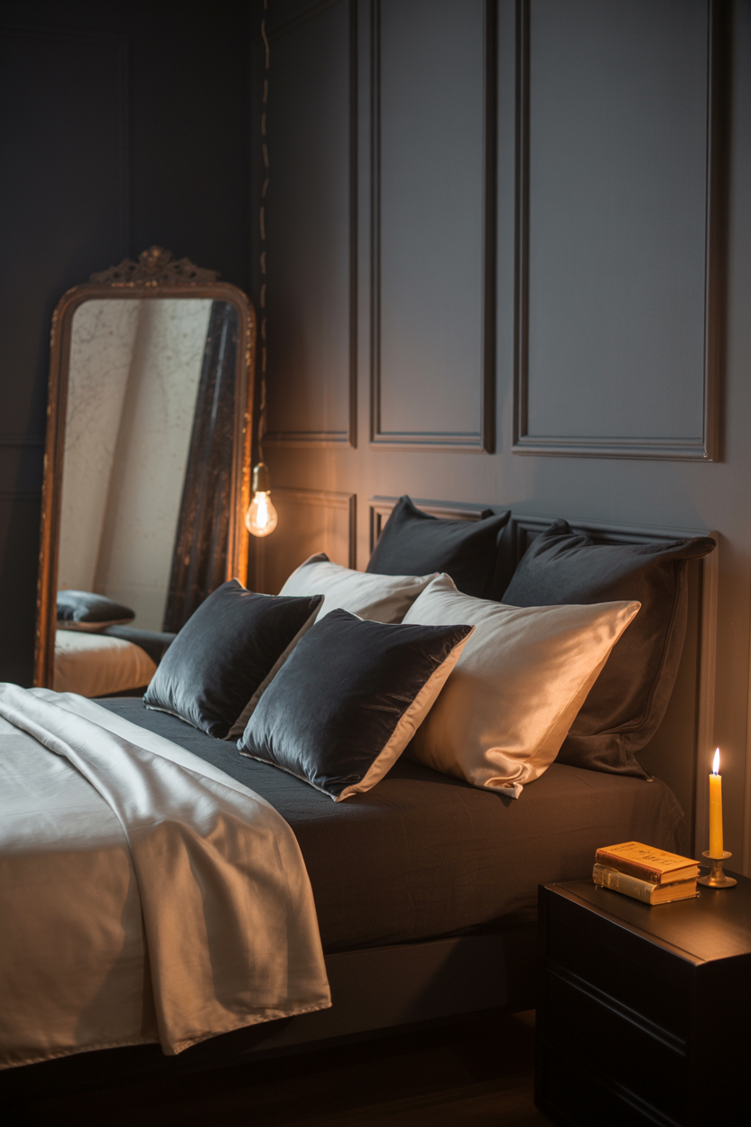 Want your romantic moody bedroom to stay fresh? Change up your accents with the seasons. Swap heavy velvet throws for lighter linens in summer. Add richer candle scents in winter. It keeps your space feeling intentional and cared for.