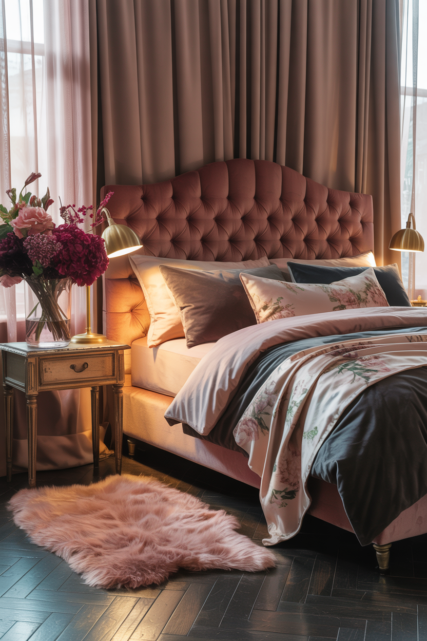 Mix these textures in your bedding, curtains, and accent pieces to create a multi-dimensional feel that’s cozy and romantic.