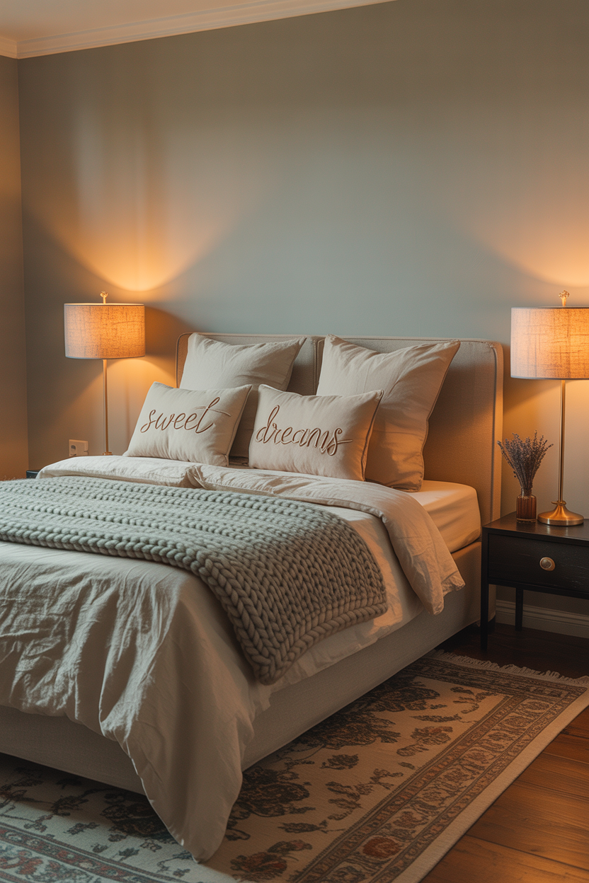 - Throw blanket with texture (chunky knit, faux fur, or linen)