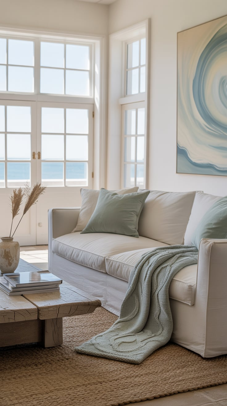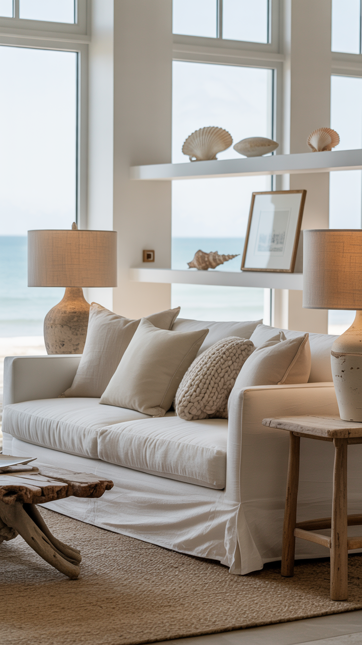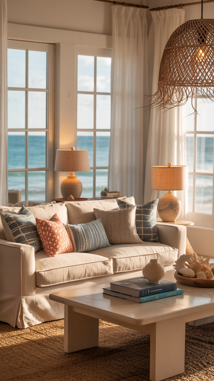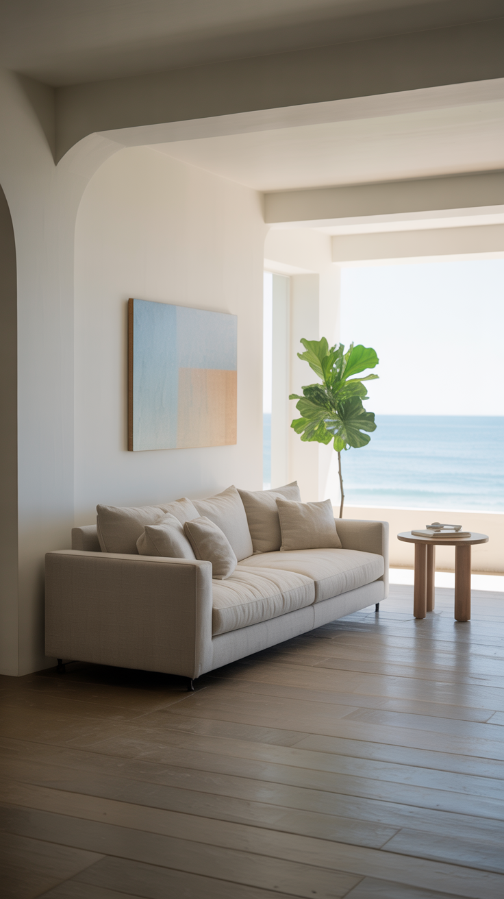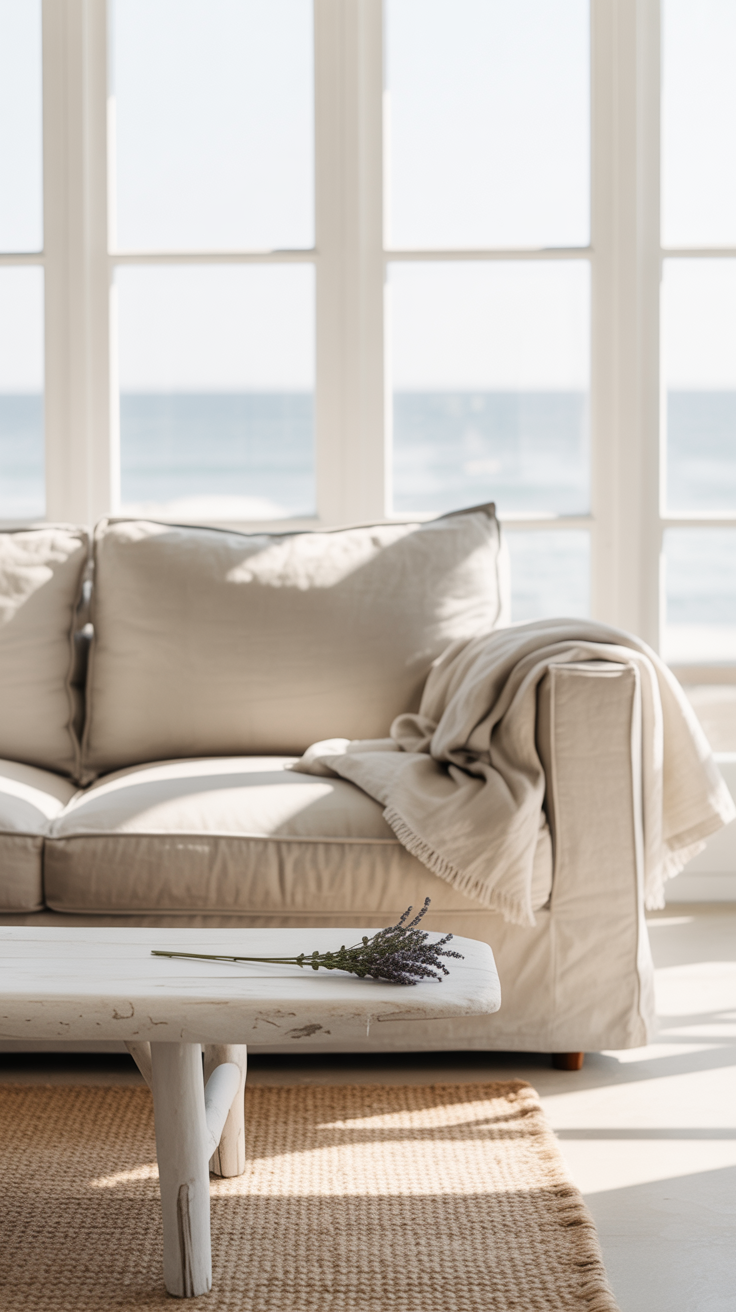 Also: don’t feel like your furniture has to scream “beach house.” Sometimes a simple, comfy beige sofa and a jute rug does 80% of the heavy lifting for the coastal vibe.