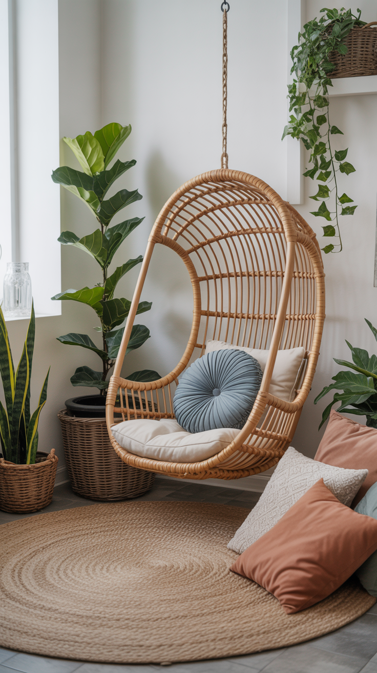 - Rattan hanging chair.