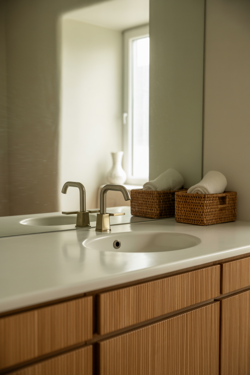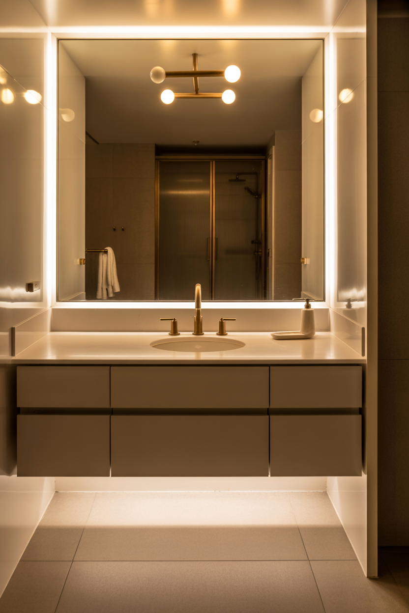 - Switch your lightbulbs to warm white (2700K–3000K). It makes your skin look amazing and your bathroom feel like a spa instead of a gas station.